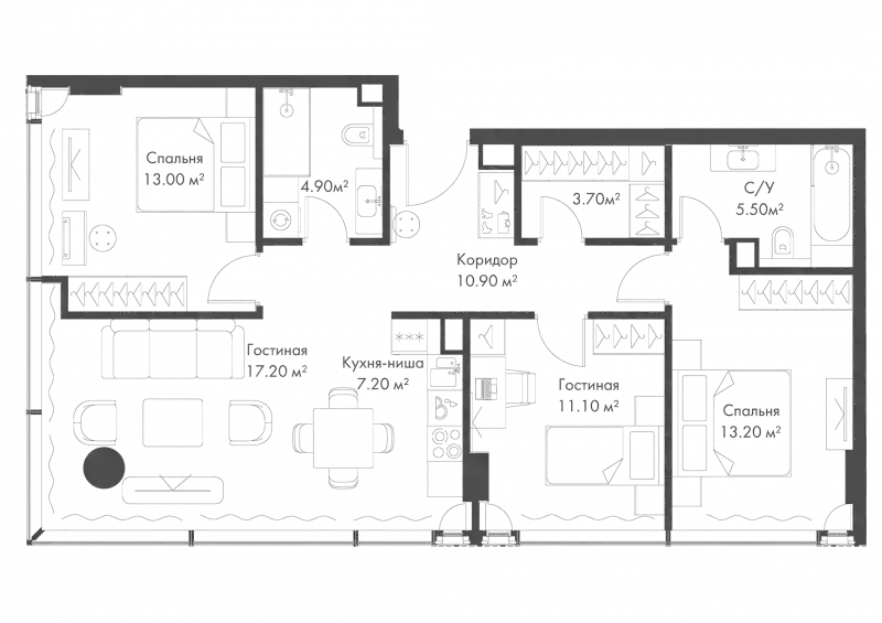 В комплексе апартаментов «SLAVA» предложено множество планировочных решений от компактных студий до просторных трехкомнатных апартаментов. Сдаются они с отделкой «White box» и высотой потолков до 3,28 метра. Во всех апартаментах выполнено панорамное остекление с пониженной теплопроводностью, из окон открываются завораживающие виды на исторический центр Москвы.