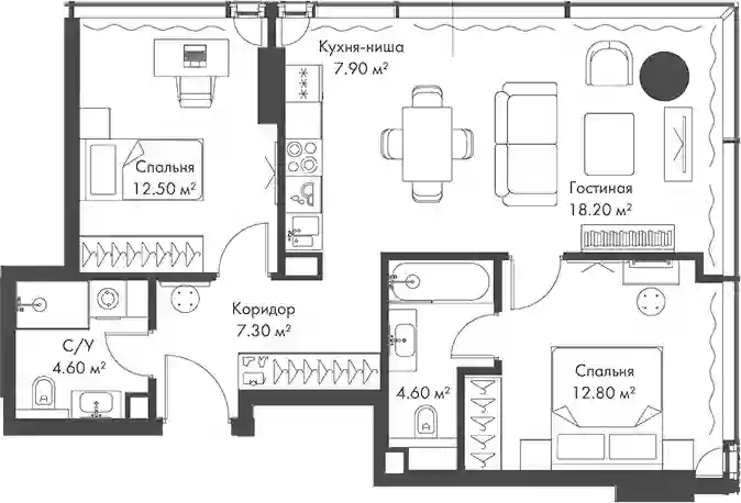 В комплексе предложено множество планировочных решений: в наличии квартиры, как классического типа, так и европланировки. Квартиры сдаются с подчистовой отделкой, высотой потолков 3 м и панорамным остеклением в пол.