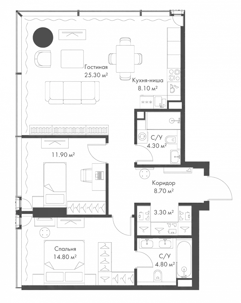 В комплексе апартаментов «SLAVA» предложено множество планировочных решений от компактных студий до просторных трехкомнатных апартаментов. Сдаются они с отделкой «White box» и высотой потолков до 3,28 метра. Во всех апартаментах выполнено панорамное остекление с пониженной теплопроводностью, из окон открываются завораживающие виды на исторический центр Москвы.