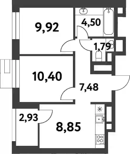 14 248 942 ₽2-к.квартира, 42.9 м², 10 эт.