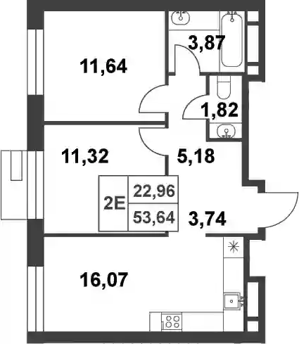 19 102 535 ₽2-к.квартира, 54.41 м², 3 эт.