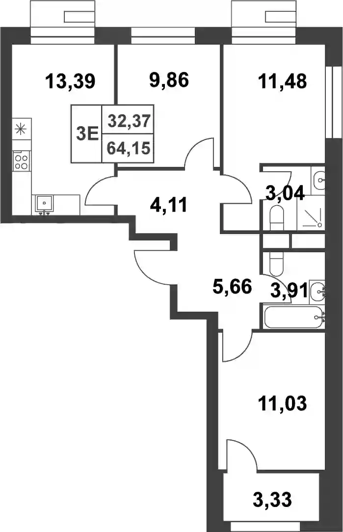 19 033 065 ₽3-к.квартира, 67.01 м², 11 эт.