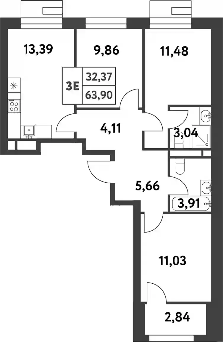 19 956 183 ₽3-к.квартира, 68.13 м², 3 эт.