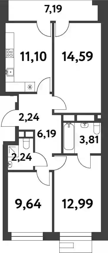 17 322 593 ₽3-к.квартира, 59.46 м², 7 эт.