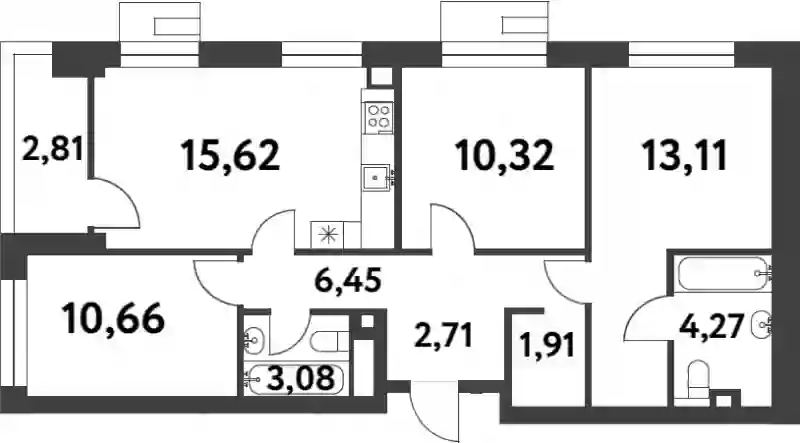 18 860 308 ₽3-к.квартира, 62.48 м², 4 эт.