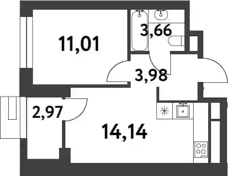 11 170 011 ₽1-к.квартира, 33.5 м², 14 эт.