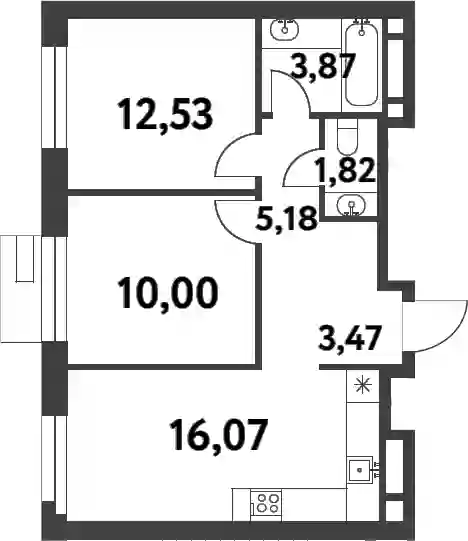 18 258 804 ₽2-к.квартира, 53.64 м², 10 эт.