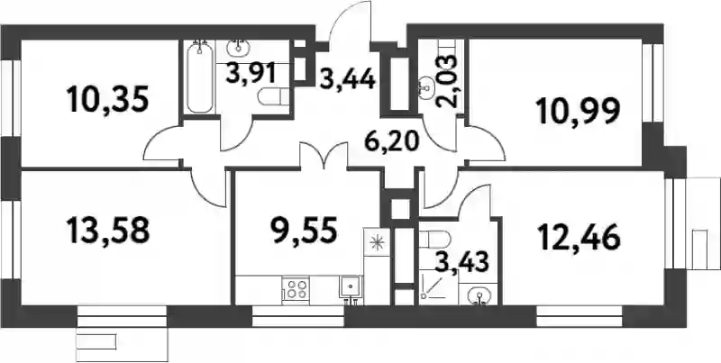 20 704 459 ₽3-к.квартира, 68.69 м², 6 эт.