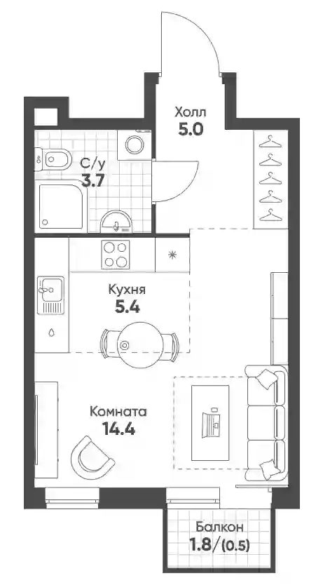 19 150 696 ₽Студия, 30.3 м², 3 эт.