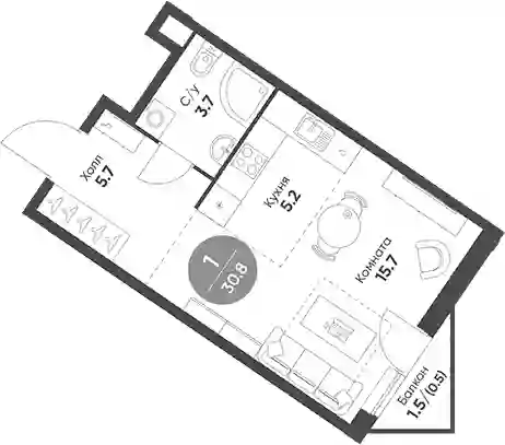 Студия, 30.3 м², 5 эт. в ЖК Sokolinn Park Корпус 1
