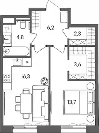 1-к.квартира, 46.9 м², 20 эт. в ЖК SOKOLNIKI Корпус Башня A
