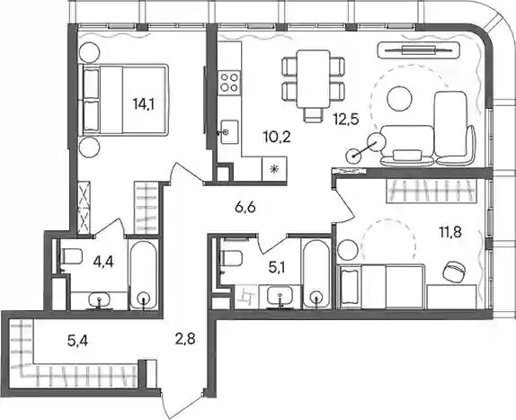 В жилом комплексе доступен широкий выбор планировочных решений: от студий до квартир с 4 спальнями площадью от 21,5 до 135 кв. метров. Есть планировки с мастер-спальней, угловой кухней-гостиной, большой детской комнатой и просторными гардеробными. На верхних этажах башен квартиры имеют панорамное остекление. Из окон открываются виды на панораму города и парк «Сокольники». Высота потолков составляет 3,1 метра. Все квартиры в комплексе сдаются без отделки.