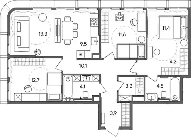 53 372 520 ₽4-к.квартира, 96.9 м², 4 эт.