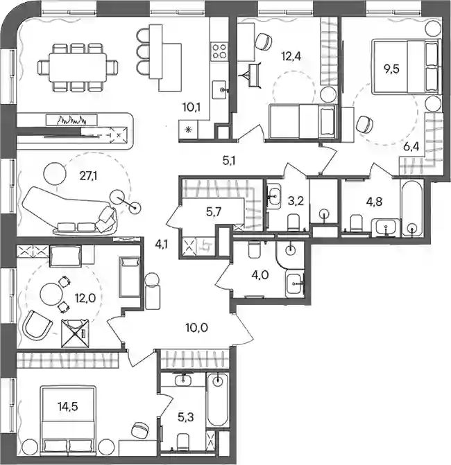 60 230 304 ₽3-к.квартира, 122.3 м², 3 эт.