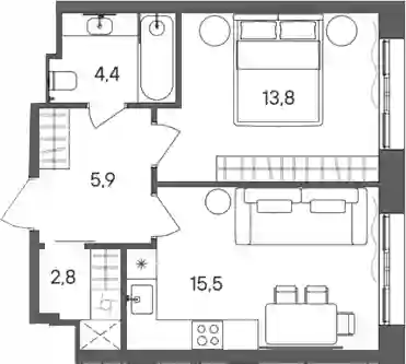 1-к.квартира, 42.4 м², 15 эт. в ЖК SOKOLNIKI Корпус Башня B