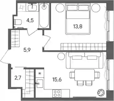 1-к.квартира, 42.5 м², 21 эт. в ЖК SOKOLNIKI Корпус Башня B