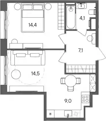 24 344 580 ₽2-к.квартира, 52.5 м², 3 эт.