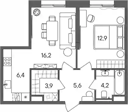 2-к.квартира, 49.2 м², 4 эт. в ЖК SOKOLNIKI Корпус Башня С