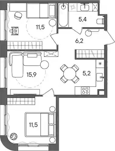28 735 380 ₽2-к.квартира, 52.2 м², 5 эт.