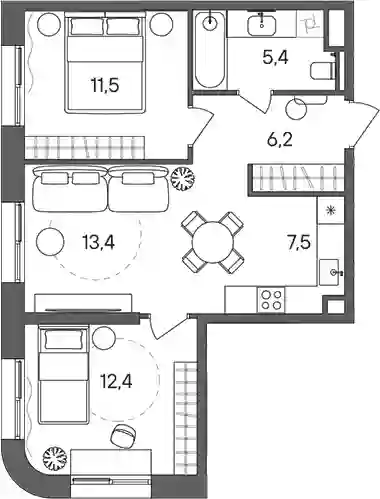 В жилом комплексе доступен широкий выбор планировочных решений: от студий до квартир с 4 спальнями площадью от 21,5 до 135 кв. метров. Есть планировки с мастер-спальней, угловой кухней-гостиной, большой детской комнатой и просторными гардеробными. На верхних этажах башен квартиры имеют панорамное остекление. Из окон открываются виды на панораму города и парк «Сокольники». Высота потолков составляет 3,1 метра. Все квартиры в комплексе сдаются без отделки.