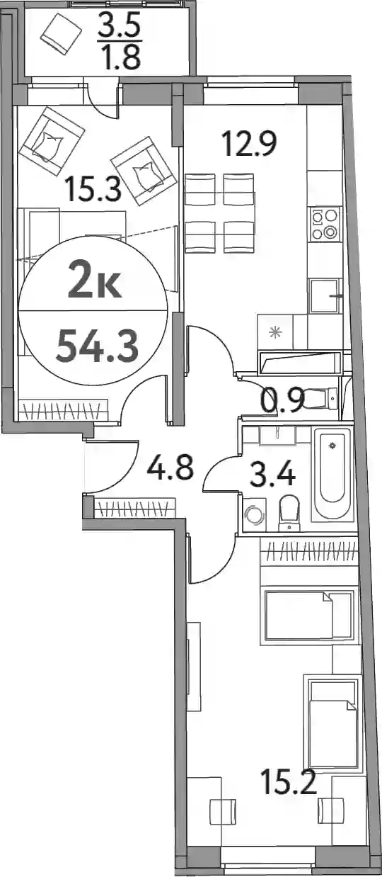 9 406 477 ₽2-к.квартира, 58.9 м², 15 эт.
