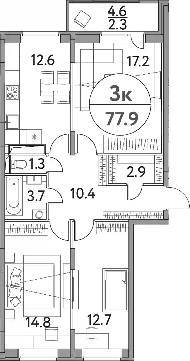 10 785 774 ₽3-к.квартира, 79.43 м², 16 эт.