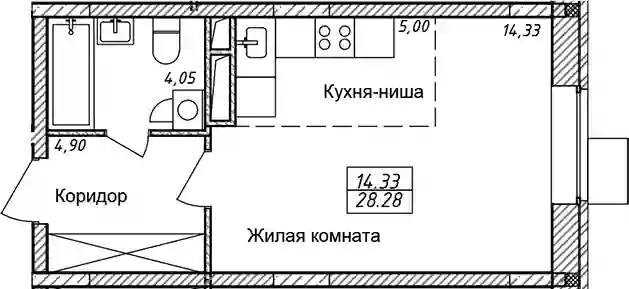 3 817 800 ₽Студия, 28.28 м², 4 эт.