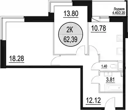 12 820 000 ₽2-к.квартира, 61.9 м², 1 эт.