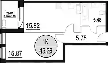 9 346 500 ₽2-к.квартира, 46 м², 5 эт.