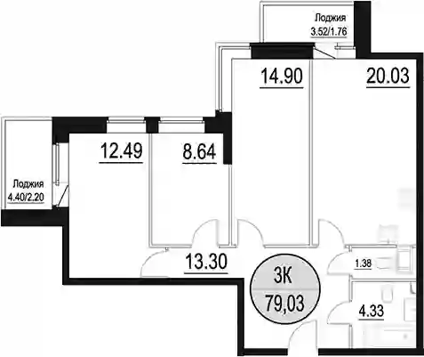 14 864 050 ₽3-к.квартира, 78.19 м², 6 эт.
