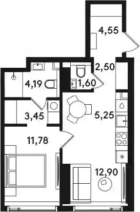 18 888 912 ₽2-к.квартира, 47.04 м², 4 эт.