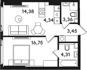 19 375 000 ₽2-к.квартира, 42.89 м², 15 эт.