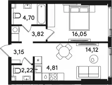 24 042 816 ₽2-к.квартира, 46.59 м², 25 эт.