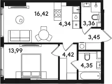 24 561 419 ₽2-к.квартира, 49.45 м², 34 эт.