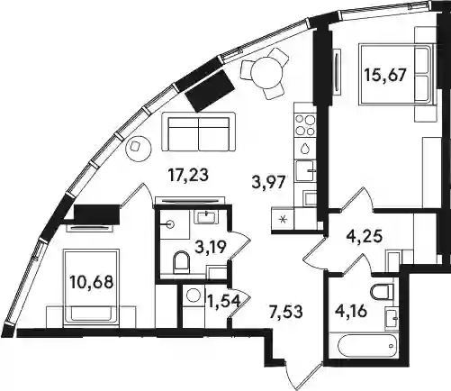 27 808 178 ₽3-к.квартира, 68.22 м², 4 эт.