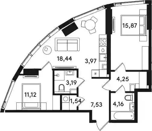 23 985 905 ₽2-к.квартира, 53.86 м², 19 эт.