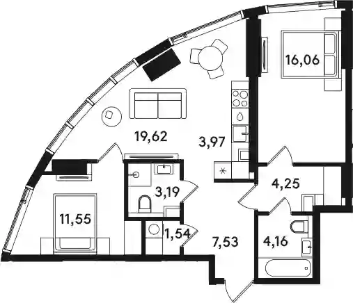 36 667 355 ₽3-к.квартира, 76.7 м², 25 эт.
