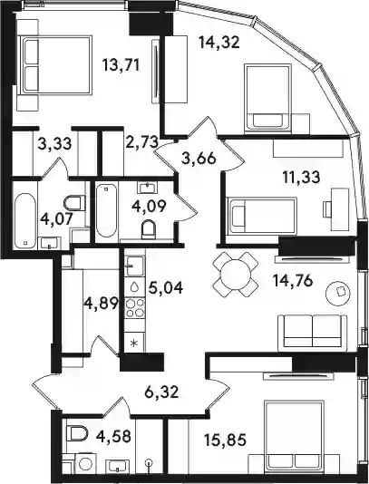 59 269 434 ₽5+к.квартира, 112.21 м², 31 эт.