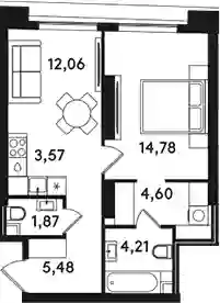 24 503 255 ₽2-к.квартира, 47.82 м², 21 эт.