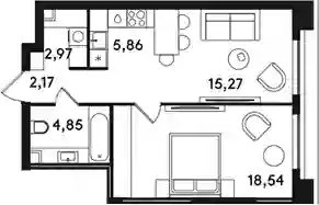 15 390 332 ₽Студия, 33.54 м², 5 эт.