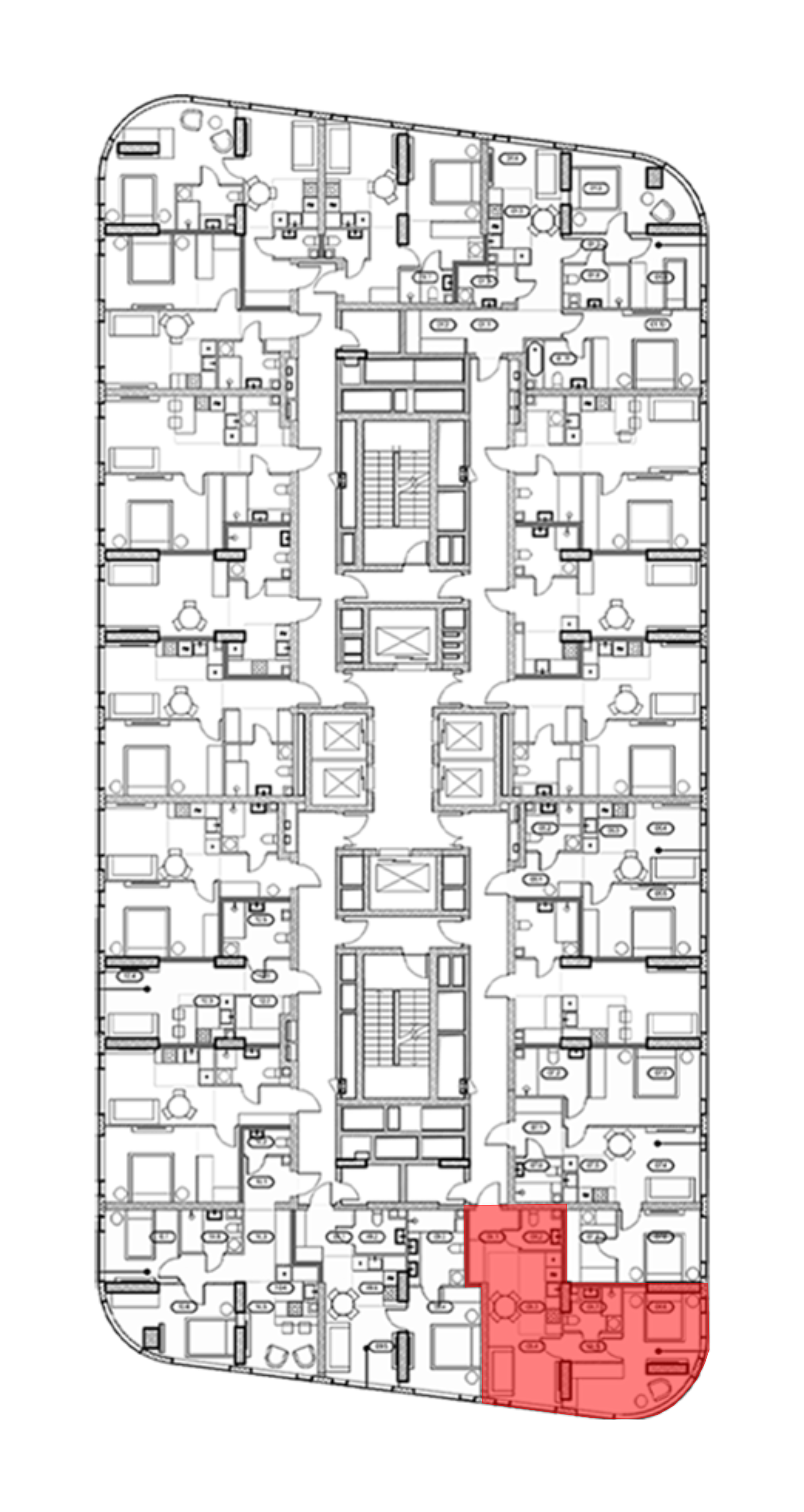 Планировки выполнены в формате «без стен», что позволяет гибко адаптировать пространство под индивидуальные потребности. В комплексе представлены квартиры от студий до 4-комнатных, а также видовые пентхаусы площадью до 141 кв. м. Из квартир с 5 этажа и выше открываются виды на парк Сокольники.