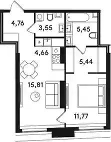 2-к.квартира, 51.44 м², 33 эт. в ЖК SOLOS Корпус 1Б
