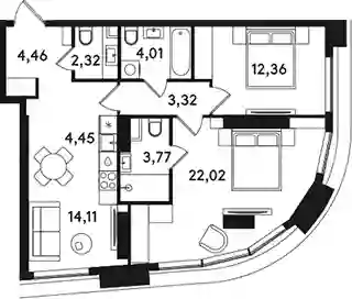 21 728 529 ₽2-к.квартира, 46.06 м², 30 эт.