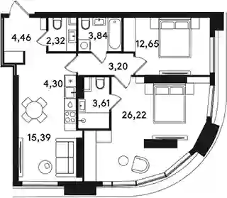 27 094 655 ₽3-к.квартира, 62.73 м², 15 эт.