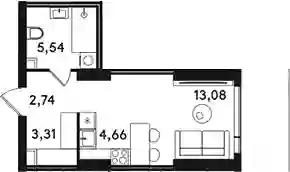Студия, 29.33 м², 15 эт. в ЖК SOLOS Корпус 1Б