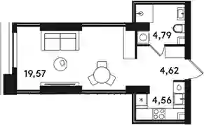 Студия, 33.54 м², 5 эт. в ЖК SOLOS Корпус 1Б