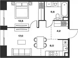 2-к.квартира, 46.3 м², 10 эт. в ЖК Soul Корпус 8