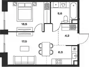 27 649 600 ₽2-к.квартира, 47.5 м², 5 эт.