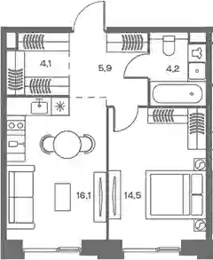 В комплексе предложен широкий выбор планировочных решений от компактных студий площадью 28 кв. метров до просторных пентхаусов с каминами площадью до 156 кв. метров. Также представлены редкие форматы квартир: с террасой, мастер-спальней и окном в ванной комнате. Уникальность проекта заключается в разнообразии типов остекления: в наличии 48 вариантов, включая джабо-окна, французские балконы и эркеры. Высота потолков составляет 3,1 метра, а в пентхаусах достигает 3,6 метра.