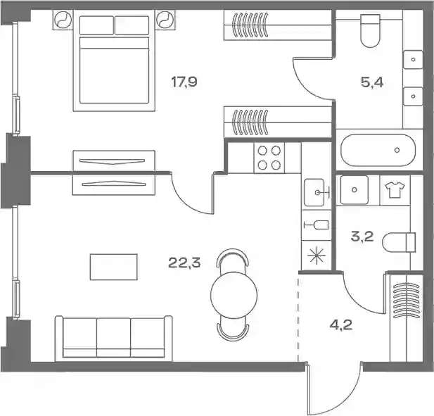 В комплексе предложен широкий выбор планировочных решений от компактных студий площадью 28 кв. метров до просторных пентхаусов с каминами площадью до 156 кв. метров. Также представлены редкие форматы квартир: с террасой, мастер-спальней и окном в ванной комнате. Уникальность проекта заключается в разнообразии типов остекления: в наличии 48 вариантов, включая джабо-окна, французские балконы и эркеры. Высота потолков составляет 3,1 метра, а в пентхаусах достигает 3,6 метра.